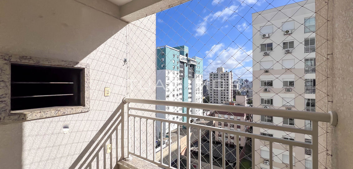 Living 2 ambientes, sacada com churrasqueira, andar alto, cozinha americana, área de serviço, 2 dormitórios, sendo 1 suíte e banheiro social.