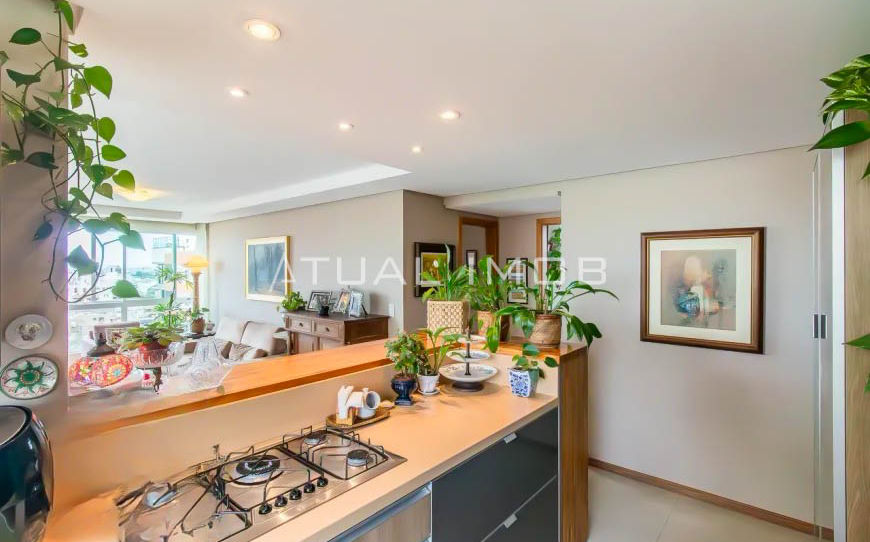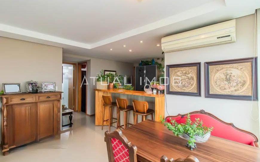 Living com lareira e amplas aberturas, cozinha americana completa com churrasqueira, área de serviço separada, 2 dormitórios, sendo 1 suíte e banheiro social. Semi mobiliado e ar condiconado em todos os ambientes.