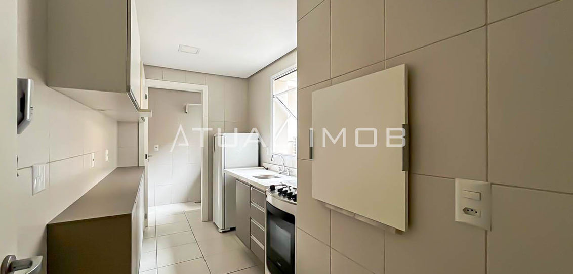 Amplo living 2 ambientes, cozinha equipada, área de serviço separada, 2 dormitórios, sendo 1 suíte e banheiro social.